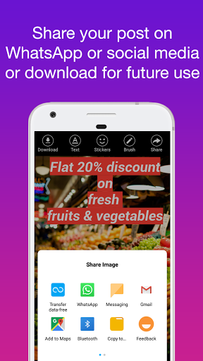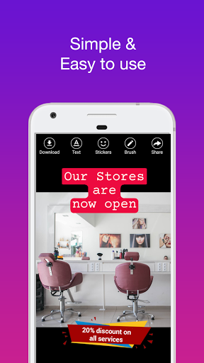 Loved it. I used to make status using different apps like picture editor, sometimes using photoshop or Instagram. But biggest problem was finding images on internet and checking their copyrights. This app has solved all my problems. Searching images is wonderful and now I can download images easily. Super cool feature 😎 And stickers are suited for my business. Thats another cool thing. Good work team. In last 3 days, I have created dozen of posts. My clients are interacting with me so much.
